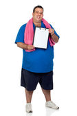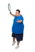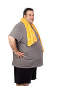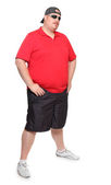 zmartwiony grubas z różową koszulę