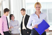 biznes kobieta stojąc z jej personelu w tle