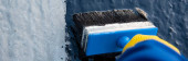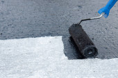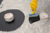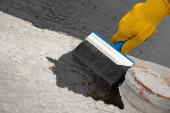Dekarz pracownik malarstwo asfalt praimer na powierzchni betonu przez t