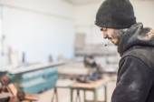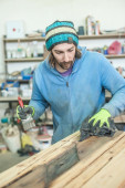 stolarz przy użyciu szlifierka elektryczna