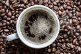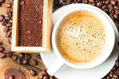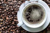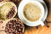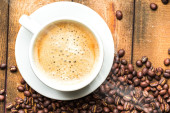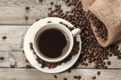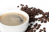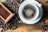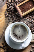 filiżanka kawy a kawa na stole