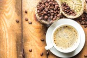 Filiżanka kawy i ziarna kawy