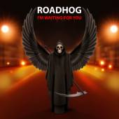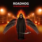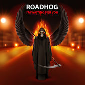 Ilustratorzy Roadhog z spalanie przerażające kosynier i tekst ja czekam na Ciebie ponad niewyraźne drogi światła