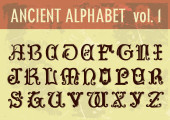 Celtyckie lub runiczne kroju z wielkich liter, cyfr i symboli dodatkowych. Slub czcionka szeryfowa, które są idealne dla nagłówków, gry lub Albumy metalowe.