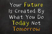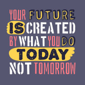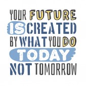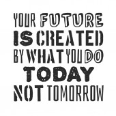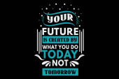 Tekst szablonu projektu Twoja przyszłość jest tworzony przez co możesz zrobić dzisiaj, nie jutro, biznesu motywacja cytat, pozytywne typography