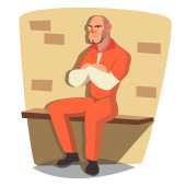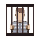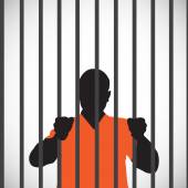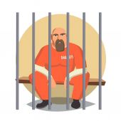 Mężczyzna więzień w pokeya wektor. Outlaw rabuś zatrzymany i zablokowane. Charakter ilustracja kreskówka