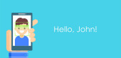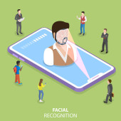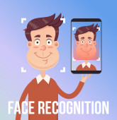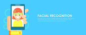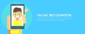 Rozpoznawanie twarzy i mobilnej identyfikacji. Młody człowiek odblokowanie jej smartphone lub aplikacji