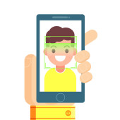 Zdjęcie "Rozpoznawanie twarzy i mobilnej identyfikacji. Młody człowiek odblokowanie jej smartphone lub aplikacji" może być wykorzystywane do celów osobistych i komercyjnych zgodnie z warunkami zakupionej licencji Royalty-free. Obraz jest dostępny do pobrania w jakości wysokiej rozdzielczości do 5760x3840.