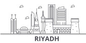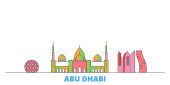 Abu Dhabi architektura linii skyline ilustracja. Liniowy wektor gród z słynnych zabytków, atrakcji, ikony designu. Krajobraz z edytowalnych obrysy