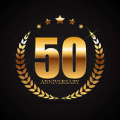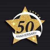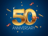 Szablon Logo złota 50 rocznica z czerwoną wstążką ilustracja wektorowa