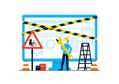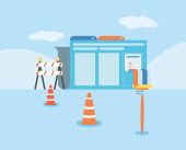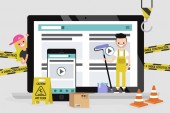 Zdjęcie "Web design i rozwoju. Strona w budowie. Zespół młodych specjalistów pracujących na stronie docelowej. Ilustracja wektorowa płaskie, clipart. Milenium w pracy. Przemysł kreatywnych cyfrowej." może być wykorzystywane do celów osobistych i komercyjnych zgodnie z warunkami zakupionej licencji Royalty-free. Obraz jest dostępny do pobrania w jakości wysokiej rozdzielczości do 5760x3840.