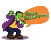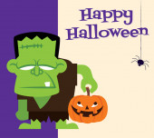 Frankensteins i tekst Happy Halloween na białym tle na białym tle, ilustracja.