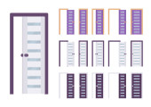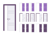 Drzwi modern zestaw, wejście do budynku, pokój. Współczesny dom wpis. Do domu, biura stylowe pomysłów. Wektor płaski ilustracja kreskówka na białym tle na białym tle, różne widoki, Otwórz