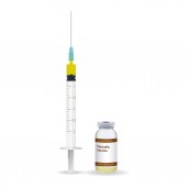 Szczepień, półpasiec szczepionki plastikowe medyczne strzykawki z igłą i fiolka na białym tle na białym tle. Ilustracja wektorowa.