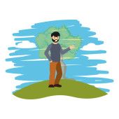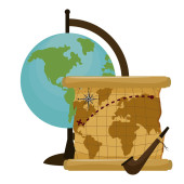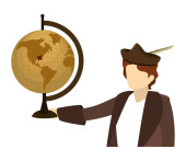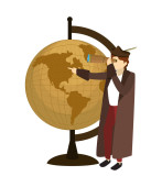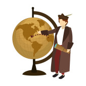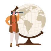 człowiek christopher columbus z turystycznej mapie globalnej