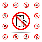 Zakazana otwarta ikona drzwi w czerwonym stylu Neon. Może być używany do Internetu, logo, aplikacja mobilna, UI, UX