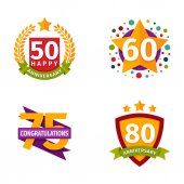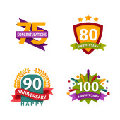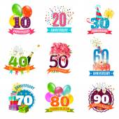 Rocznica i powitanie urodziny na białym tle ikony starzenie się uroczystości