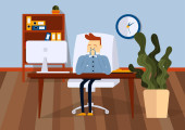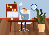 Zdjęcie "Biznesmen w biurze patrzy na monitor. Ilustracja wektora koloru" może być wykorzystywane do celów osobistych i komercyjnych zgodnie z warunkami zakupionej licencji Royalty-free. Obraz jest dostępny do pobrania w jakości wysokiej rozdzielczości do 5760x3840.