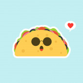 Ilustracja wektora z meksykańskim tacos kawaii żywności. Tortilla jedzie na tacos. Cute ilustracji kreskówki izolowane na tle koloru.
