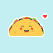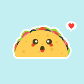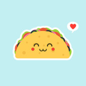 Zdjęcie "Ilustracja wektora z meksykańskim tacos kawaii żywności. Tortilla jedzie na tacos. Cute ilustracji kreskówki izolowane na tle koloru." może być wykorzystywane do celów osobistych i komercyjnych zgodnie z warunkami zakupionej licencji Royalty-free. Obraz jest dostępny do pobrania w jakości wysokiej rozdzielczości do 5760x3840.