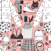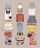 wektor czarny, biały i żółty doodle zestaw, ciemne moda, cyberpunk, styl