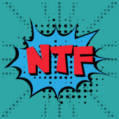 Pojęcie żetonu niezamiennego. Blue Text NFT w stylu pop art. Zapłać za unikalne przedmioty kolekcjonerskie w grach lub sztuce. Ilustracja wektora.