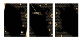Zdjęcie "Zestaw poziomy Nowoczesny plaster miodu czarne tło ze złotym plastrem miodu." może być wykorzystywane do celów osobistych i komercyjnych zgodnie z warunkami zakupionej licencji Royalty-free. Obraz jest dostępny do pobrania w jakości wysokiej rozdzielczości do 5760x3840.