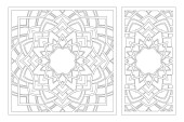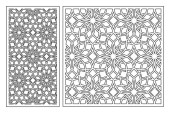 Zestaw dekoracyjny karty do cięcia. Arabski geometryczny wzór mozaiki. Cięcie laserowe. Stosunek 1: 1, 1: 2. Ilustracja wektora.