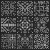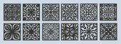Laserowo wycięte szablony, papier lub panele do cięcia metalu. Streszczenie tekstury dekoracyjne laserowo wycięte panele wektorowe zestaw ilustracji wektorowych. Wycinanie płyt grawerowanych