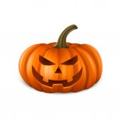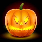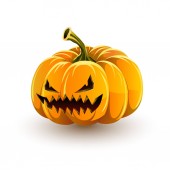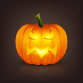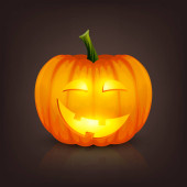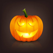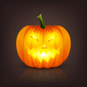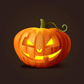 Vector świecące błyszczące kreskówki Halloween Dynia Latarnia z Funny Face. Z przodu. Wzór Realistycznej Dyni Jack O Lantern. Jesienne wakacje, koncepcja Halloween