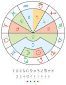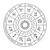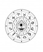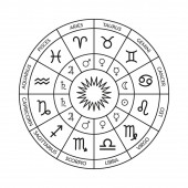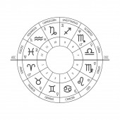 The four primary angles in the horoscope. The most powerful houses are ascendant, Medium Coeli, descendant and Imum Coeli. Astrological chart, also wheel of the zodiac, showing the twelve star signs.