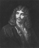 Rysunek Molire 'a, słynnego francuskiego pisarza, aktora i dramaturga.