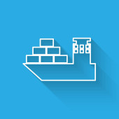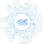Zdjęcie "Złota linia statek towarowy z pudełkami usługi ikona odizolowany na ciemnoniebieskim tle. Dostawa, transport. Frachtowiec z paczkami, pudłami, towarami. Wektor." może być wykorzystywane do celów osobistych i komercyjnych zgodnie z warunkami zakupionej licencji Royalty-free. Obraz jest dostępny do pobrania w jakości wysokiej rozdzielczości do 5760x3840.