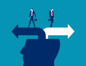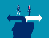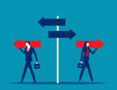 Zdjęcie "Inwestor biznesowy patrząc w odwrotnym kierunku ścieżki. Biznes punkt zwrotny wektor ilustrator" może być wykorzystywane do celów osobistych i komercyjnych zgodnie z warunkami zakupionej licencji Royalty-free. Obraz jest dostępny do pobrania w jakości wysokiej rozdzielczości do 5760x3840.