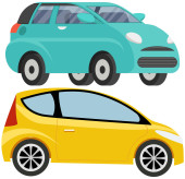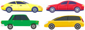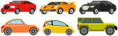 Zdjęcie "Zestaw kolorowych nowoczesnych samochod? w, samochod? w z przodu i z boku. Pojazd codziennego użytku z transportu. Transport, taksówka. Wygodny samochód do jazdy. Samochód sedan lub hatchback z przyciemnianymi szybami" może być wykorzystywane do celów osobistych i komercyjnych zgodnie z warunkami zakupionej licencji Royalty-free. Obraz jest dostępny do pobrania w jakości wysokiej rozdzielczości do 5760x3840.