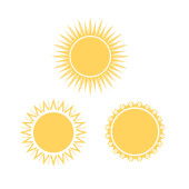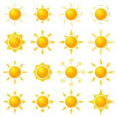 ikona słoneczka symbole pomarańczowe i żółte słońce wektor zestaw