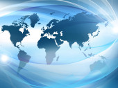 Najlepsza koncepcja internetowa globalnego biznesu. Globus, świecące linie na tle technologicznym. Elektronika, Wi-Fi, promienie, symbole Internet, telewizja, łączność komórkowa i satelitarna