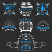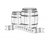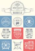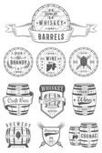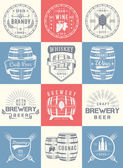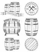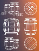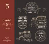 Zestaw drewnianych beczek odznaki i bednarstwem Logo