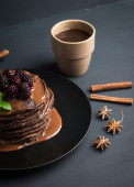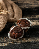Filiżankę gorącej kakao z pianki i czekoladowe babeczki