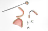 Protezy i lusterko dentystyczne izolować na białym tle