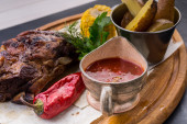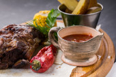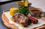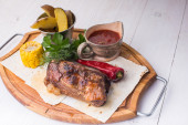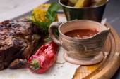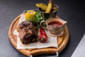 Różne pyszne mięso z grilla z warzyw na płytce drewniane