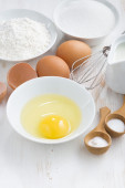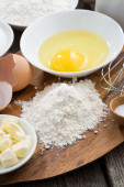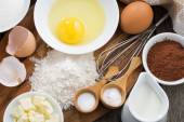 przygotowane do pieczenia składniki na drewnianym stole, poziome