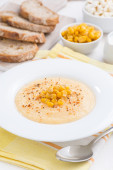 zupa pomidorowa z ryżem i warzywami w rondlu i chleb