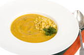 Zupa dyniowa z marchewki i pomidory Cherry, szafran, suszone jej