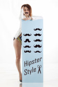 pretty housemaid with cloth and bucket cleaning the floor