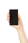 przytrzymanie puste czarnego papieru wizytówkę ręka