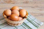 Jaja kurze na drewnianym tle