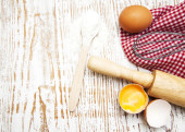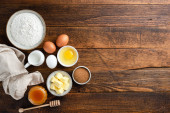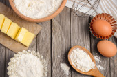 Składniki do pieczenia - mleka, masła, jajka i mąki.