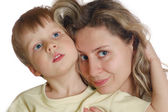 portrait of two happy young women with their children