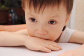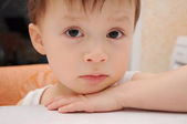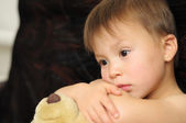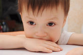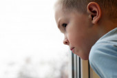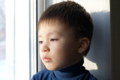 Chłopiec, patrząc przez okno i myśli filozoficznej